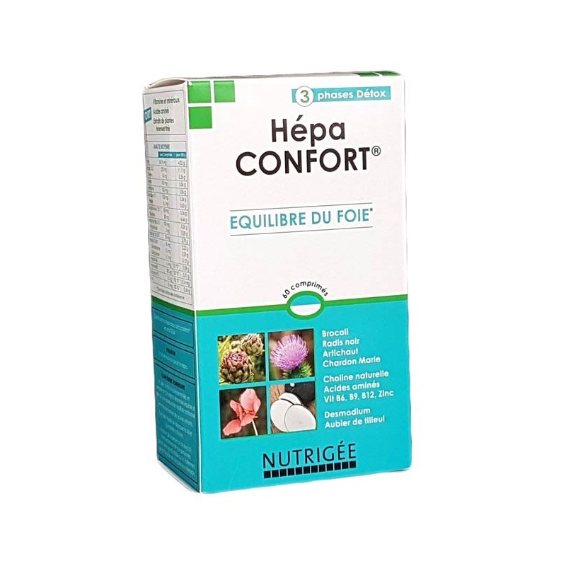 Brocoli, radis noir, artichaut, chardon marie, choline naturelle, acides aminés, vit B6, B9, B12, zinc, desmodium, aubier de tilleul.
