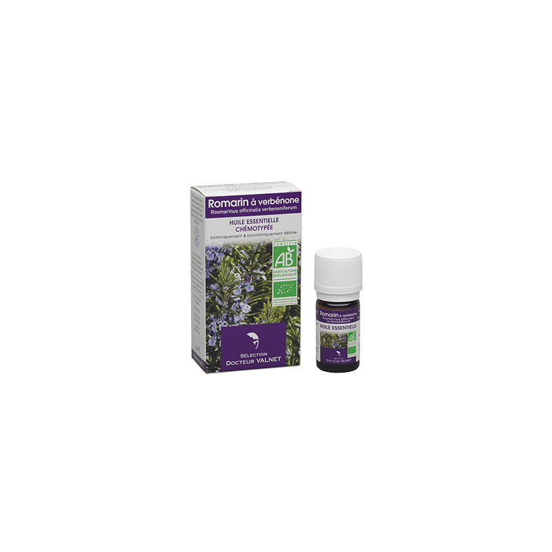 Le romarin à verbénone est un des chémotypes de l’espèce Rosmarinus officinalis que l’on rencontre dans les populations sauvages de romarin particulièrement en Corse et qui se cultive facilement. Son huile essentielle composée principalement de 1,8-cinéole et de verbénone est notamment recommandée en cas de problèmes respiratoires.
