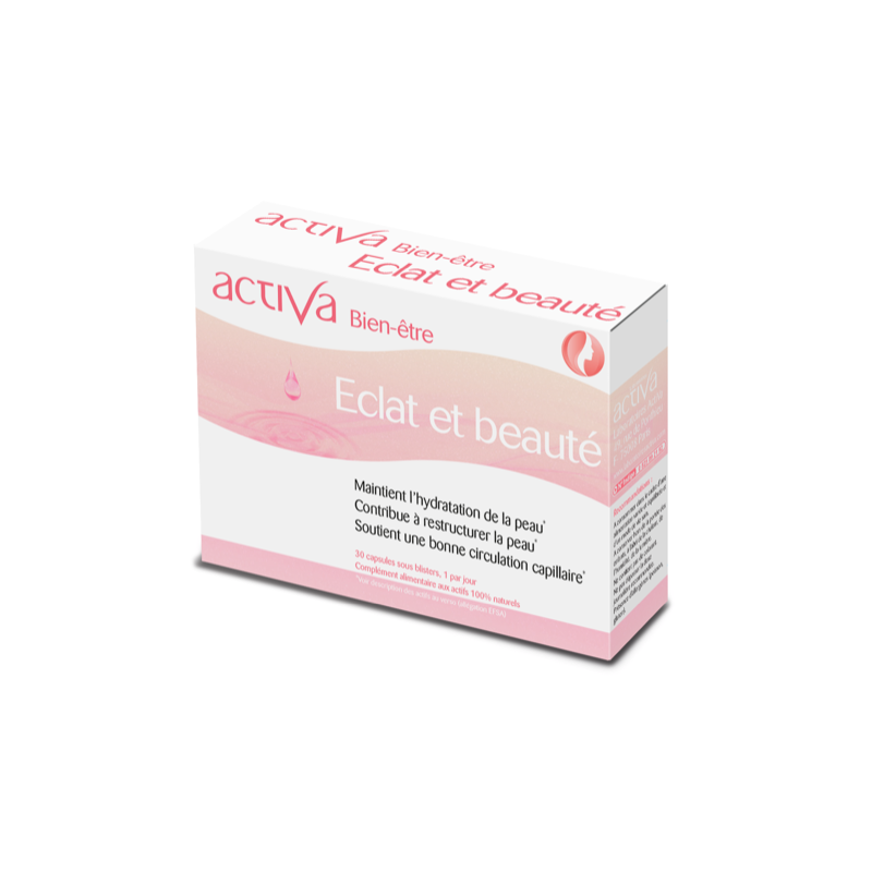 Le complément alimentaire "Bien-être Eclat et beauté" du laboratoire Activa est une formule naturelle concentrée en huiles de Bourache, d'onagre, de germe de Blé et de pépin de Raisin pour nourrir les cellules cutanées en acides gras essentiels oméga 3 et 6.